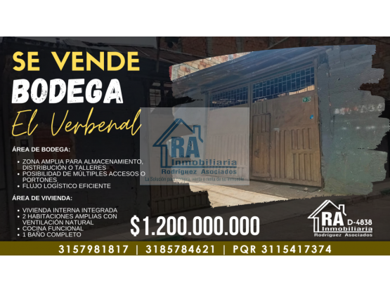 Se ofrece en venta imponente bodega con vivienda integrada en el barrio Costa Rica, Suba, ideal para empresas o inversionistas que buscan combinar operación logística eficiente con comodidad habitacional en un mismo lugar. Su diseño funcional y amplio frente la convierten en una excelente opción para actividades industriales, comerciales o mixtas. Características del inmueble: Tipo: Bodega con vivienda integrada Ubicación: Barrio Costa Rica, Suba Área total: 350 m² Dimensiones: 25 metros de frente x 14 metros de fondo Amplio frente que facilita maniobra de vehículos y acceso logístico Espacio diáfano y despejado, ideal para operación industrial Excelente conectividad y exposición comercial Área de bodega: Zona amplia para almacenamiento, distribución o talleres Posibilidad de múltiples accesos o portones Flujo logístico eficiente Área residencial: Vivienda interna integrada 2 habitaciones amplias con ventilación natural Cocina funcional 1 baño completo Uso ideal: Centros de distribución Talleres especializados Empresas con operación logística Inversionistas Negocio con vivienda en el mismo lugar Ventajas: Combinación de uso industrial y residencial Permite vigilancia permanente Optimización del espacio para trabajo y vivienda Alta funcionalidad operativa y habitacional